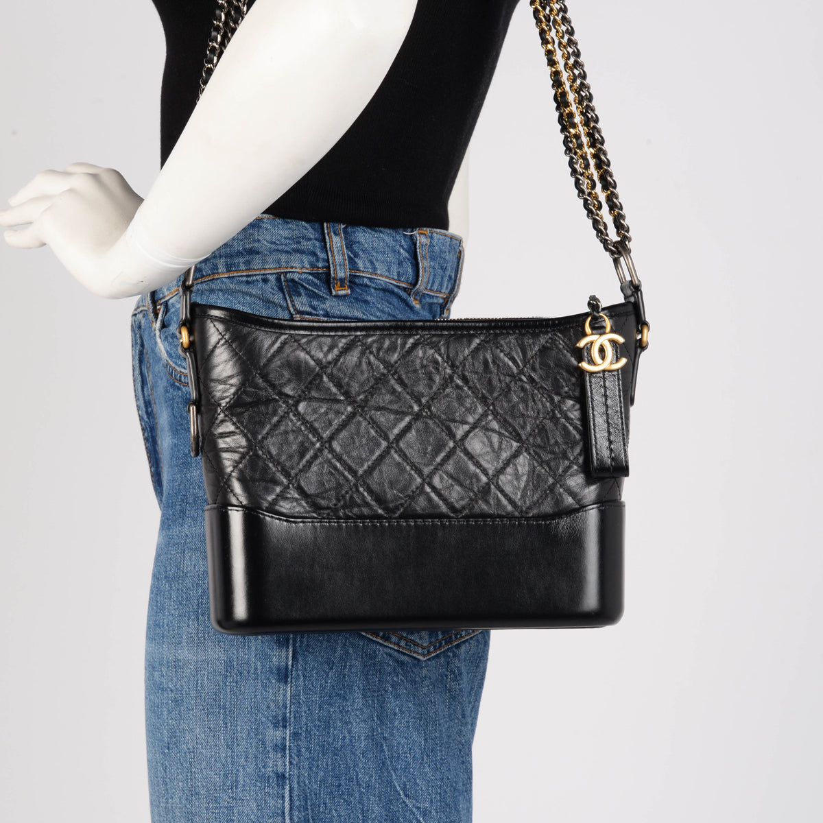 A Chanel Black Aged Calfskin Medium Gabrielle Hobo Bag.